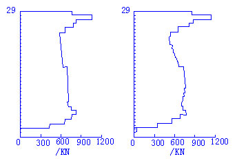 通过计算可知 ,本工程 1~25层侧向刚度规则性基本满足要求 ,但 26~27层墙肢长度急剧减少 ,部分退化成异形柱,存在刚度突变,不利于抗震,地震作用下楼层最大反应力曲线如图 4所示。