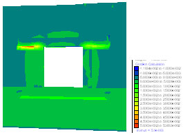为开洞剪力墙应力均匀(开洞前)                  角部应力集中(加固前)