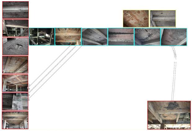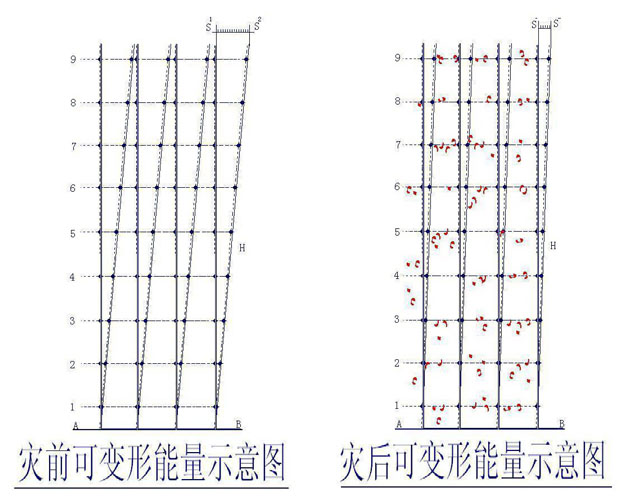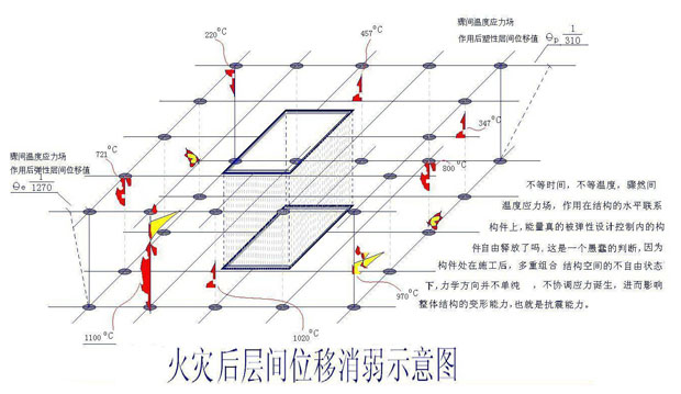 思考 几何变形及不协调应力已经诞生,加固设计方案有以下几种模式: ① 剪枝卸荷切剪联系构件,卸除不协调应力,从设计施工角度讲难度极大,不易采用; ② 升温卸荷,太过于理想化,控制起来更难,不宜采用; ③ 从控制位移或者调整变形能力着手,较为容易。尊重既有构造组受力形态,适当加强。这也是建筑医学骨科的宗旨所在。