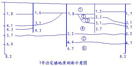 ③在南侧地基土中发现地下水,埋深 2.0m , 2.0m 之上地基土含水率大。