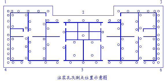 共设计布置了106个注浆孔,室外58孔室内48孔,孔位布置如图所示。