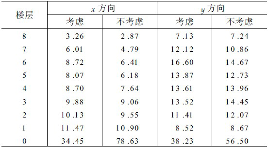 表6 隔震结构是否考虑阻尼比不同的层间位移峰值对比/mm
