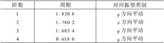 隔震结构前4阶自振周期及其对应的振型类别见表8。从上述图表中不难看出Mexico波的卓越周期与隔震结构的前三阶自振周期都十分接近,因此结构在Mexico波作用下的反应最为强烈EICentro波的卓越周期与隔震结构的前几阶的自振周期相差较远,因此结构的地震反应较小。