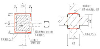2、对板进行外加预应力处理,对梁采用包钢和扩大截面处理。
