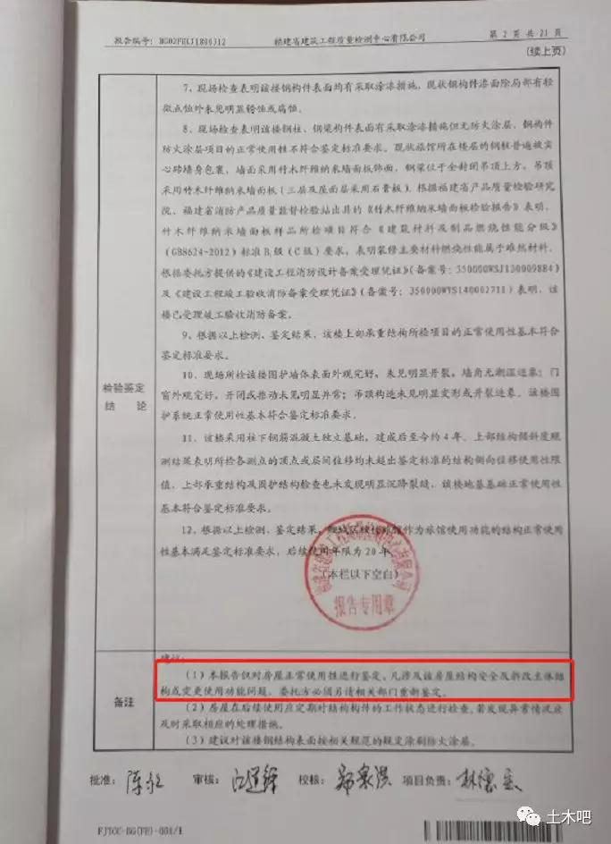 福建省建筑工程质量检测中心有限公司(下称“福建省检测中心”)出具的《检验报告》显示,该酒店曾进行结构正常使用性鉴定。正常使用性鉴定的要求比可靠性鉴定低。(2)